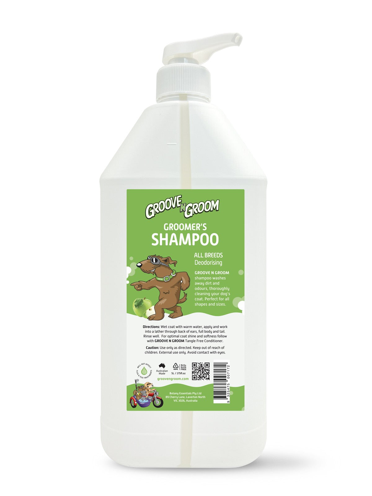 Directions: Wet coat with warm water, apply and work into a lather through back of ears, full body and tail. Rinse well. For optimal coat shine and softness follow with GROOVE N GROOM Tangle Free Conditioner.