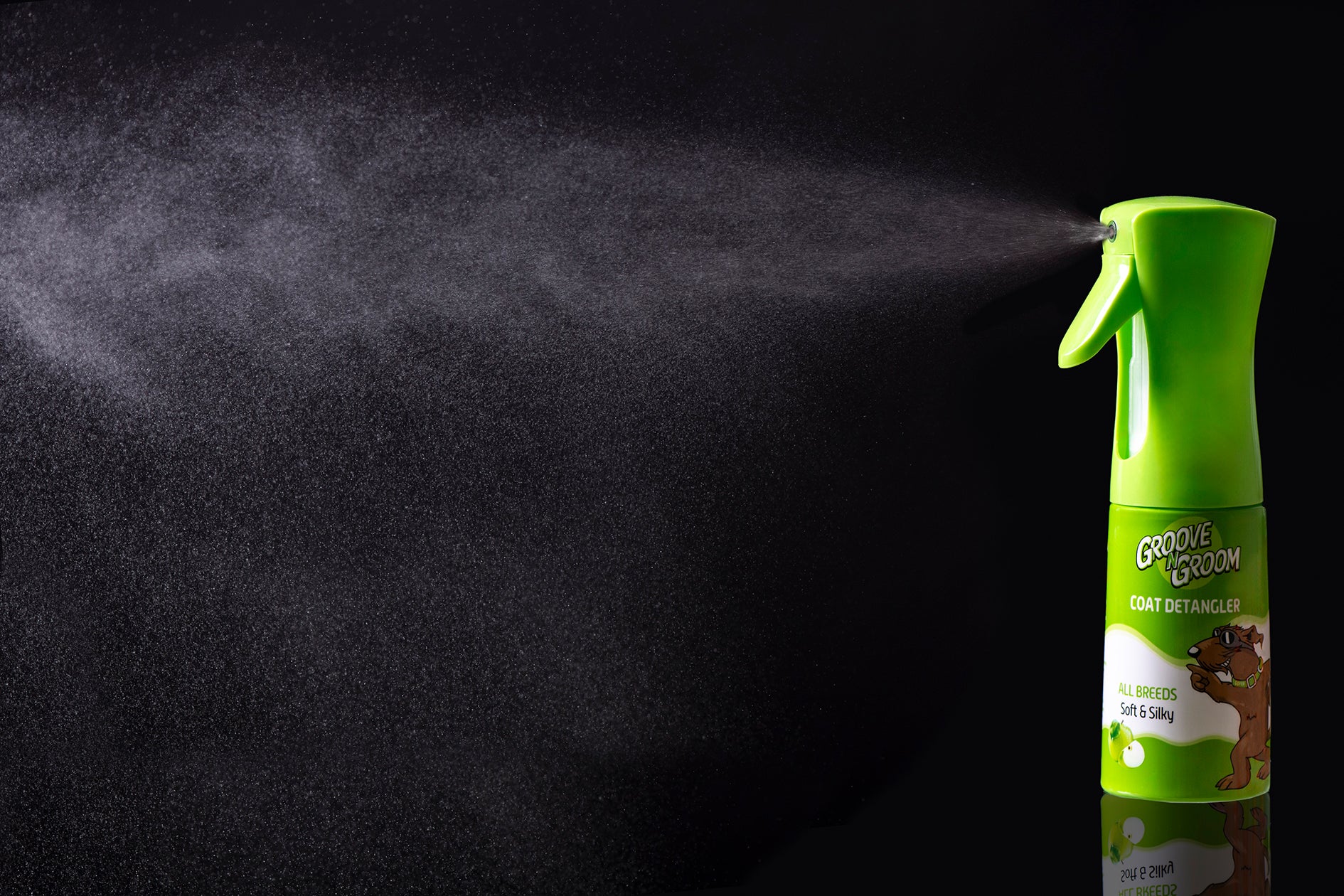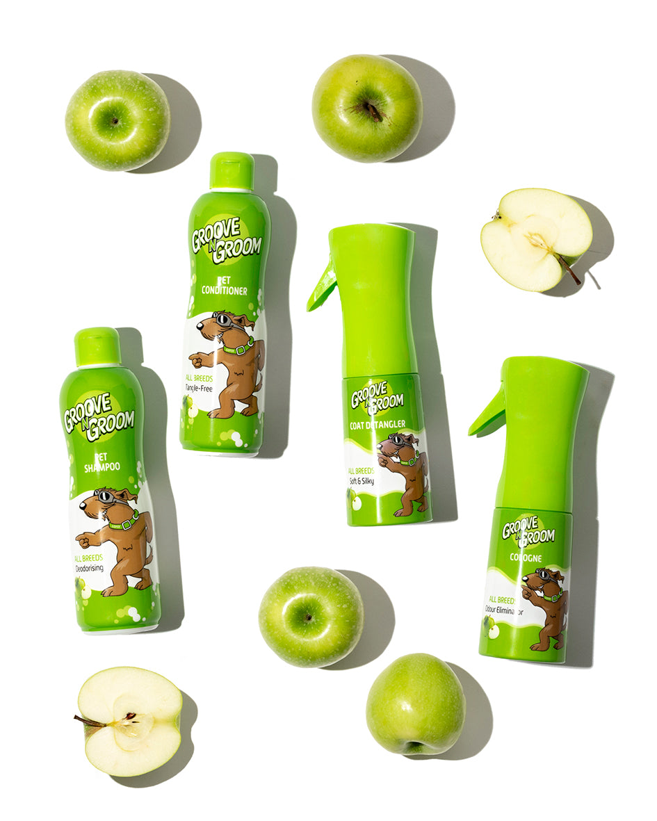 Directions: Spray and brush thoroughly through coat. Be careful to avoid contact with eyes. May be used on wet coat after washing or dry coat between washes. For extra odour protection use with GROOVE N GROOM Dog Deodoriser Spray.