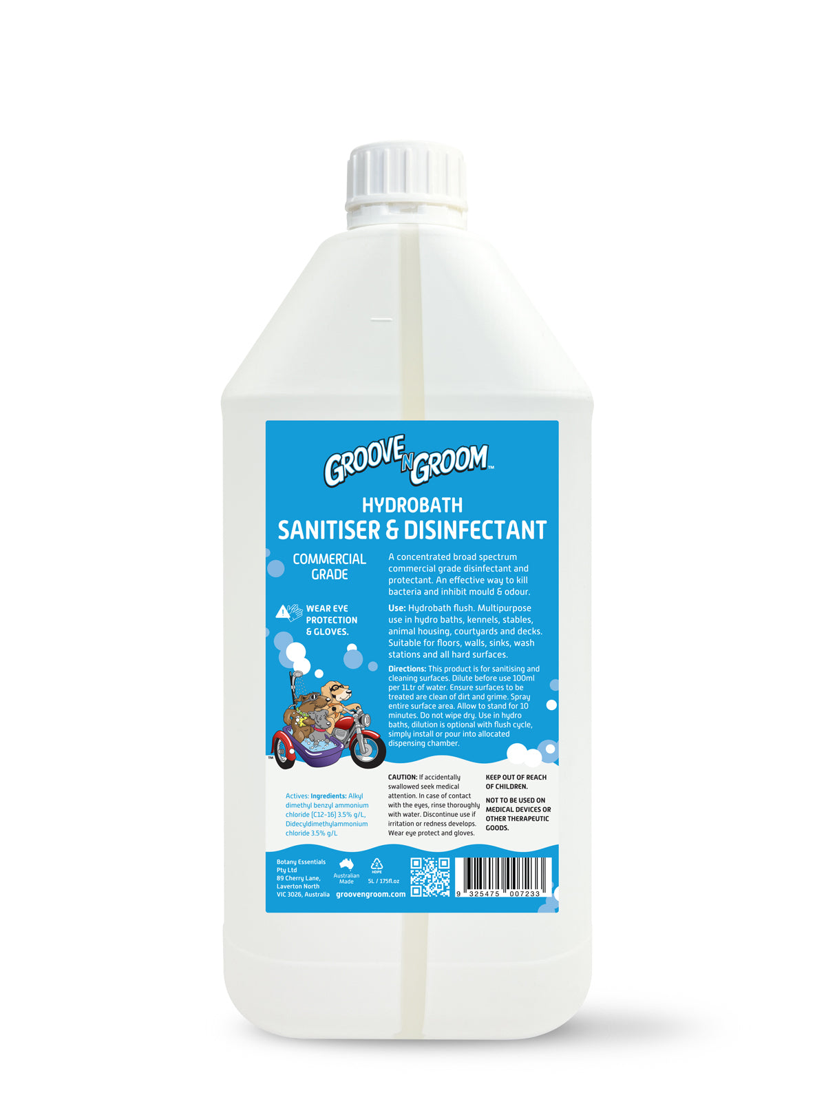 A concentrated broad spectrum commercial grade disinfectant and protectant. An effective way to kill bacteria and inhibit mould & odours. Multipurpose use in hydro baths, kennels, stables, animal housing, courtyards and decks for hygienic clean.